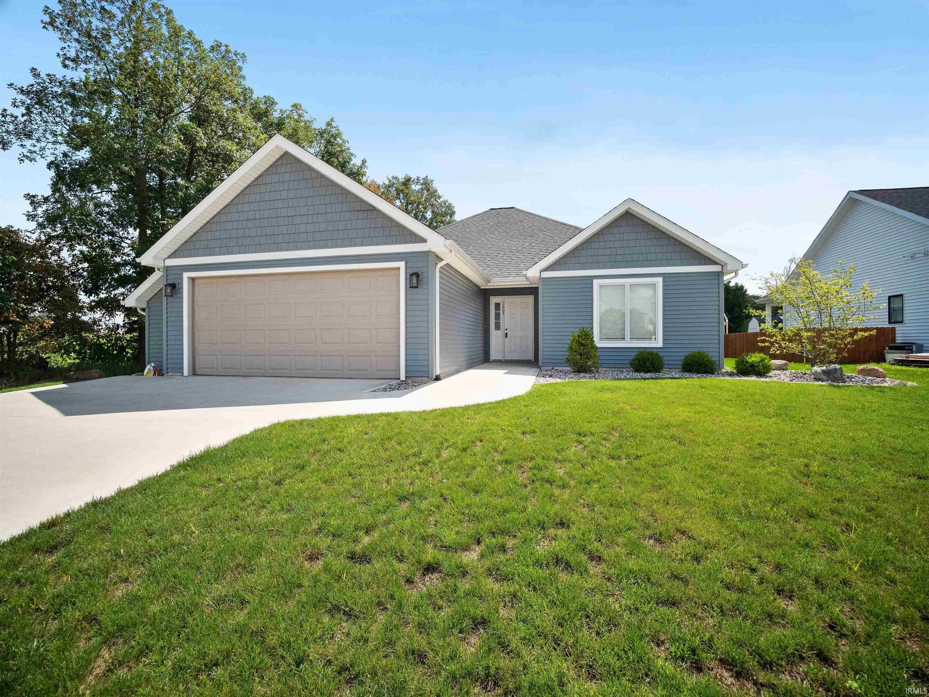 Check out this adorable 3 bedroom, 2 bath home. Situated on an end lot next to a field offering a country view in a city setting. This home has a split floorplan. You will love the Cortec (laminate) flooring in this home. You can find it in all areas except for 2 of the bedrooms. The kitchen is equipped with stainless steel appliances and the range oven is natural gas. The kitchen is open to the living room that a gas fireplace perfect for cozy evenings at home. The home was built in 2020 so all appliances were new at that time including: Gas Furnace, Air Conditioner, Water Softener, Tankless Water Heater, Kitchen Appliances, and Washer/Gas Dryer. The garage even has a mini split system to allow it to be cooled/heated for extra living space. Agents has financial interest in the home. *The play-set in the background does not stay, and will be removed.