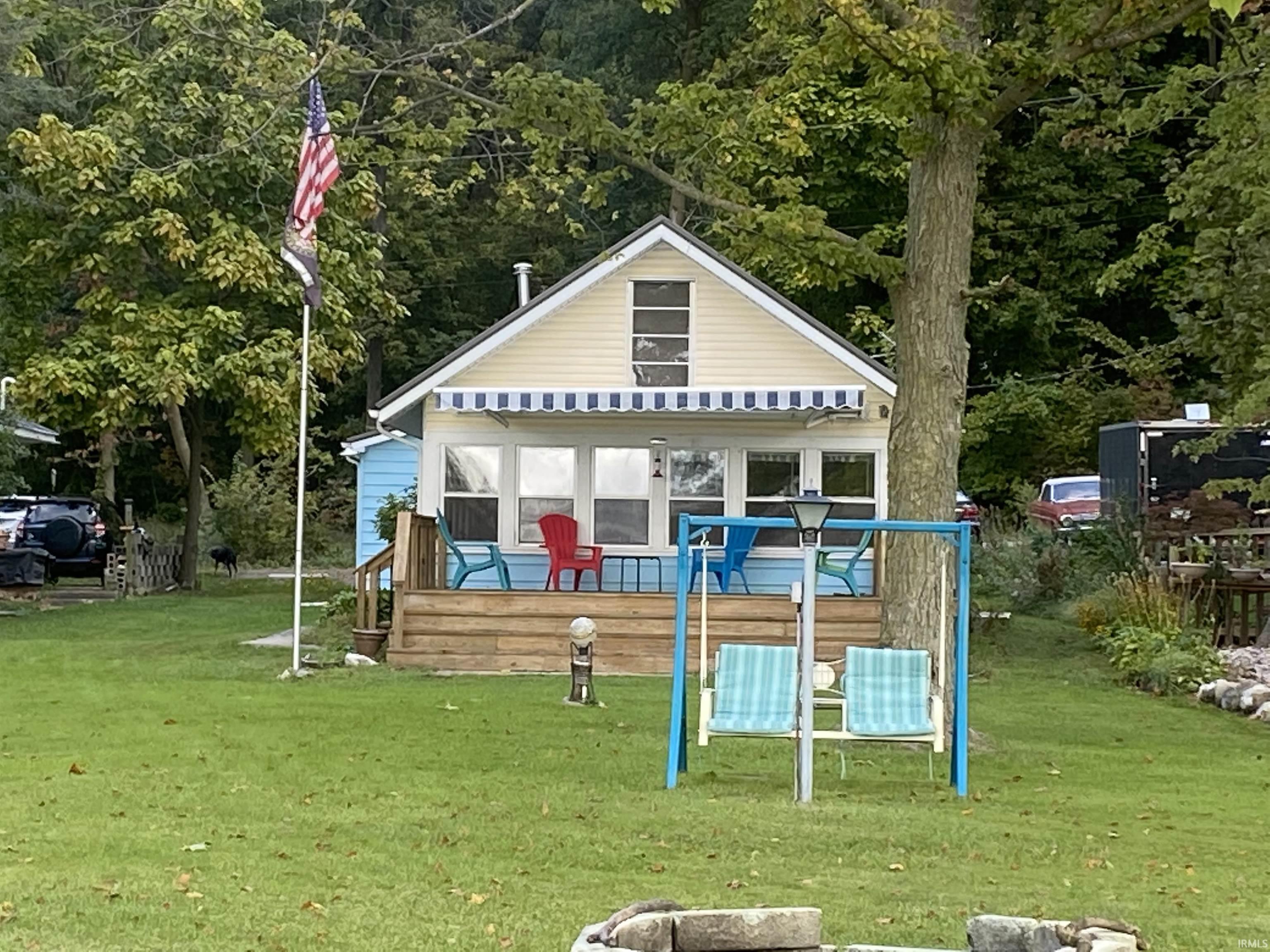 You will not want to miss the opportunity to own a lake home on one of the most pristine fishing lakes in LaGrange county. This home sits on a level lake lot with 40' of frontage on Pretty Lake. There are 3 bedrooms on the main level and 2 bunk rooms on the upper level. Bunk rooms each have their own ladder on each side of the kitchen. This home features an eat in kitchen, charming living room with knotty pine walls and ceiling, Free standing gas fireplace and plenty of windows to see the outstanding lake views. Relax on the lake side deck while visiting with neighbors, watching the boaters on the lake or watching the kids swim. When the sun gets to hot sitting on the deck roll out the lighted Deck Awning. There have been many updates to the home: new metal roof on home and garage 2018, Deck 2018. Deck Awning 2019. Free standing fireplace 2018, New kitchen flooring 2018, New carpet in 2 bedrooms. bunk rooms and hallway 2019 plus many more updates. Main bath has a stand up shower and the 2nd bath has been updated with a walk in tiled shower and is located in the garage. The garage is an oversized 2 Car with plenty of storage plus a work bench and there is electrical outlet ran for a dryer and would be easy to add a washer and dryer in the closet. There is a 30' pier that stays, 2 kayaks plus many life jackets, all outdoor furniture and a firepit that stays. Most of the furniture will be staying, kitchen items and garage items. This home is turn key and ready for new owners.