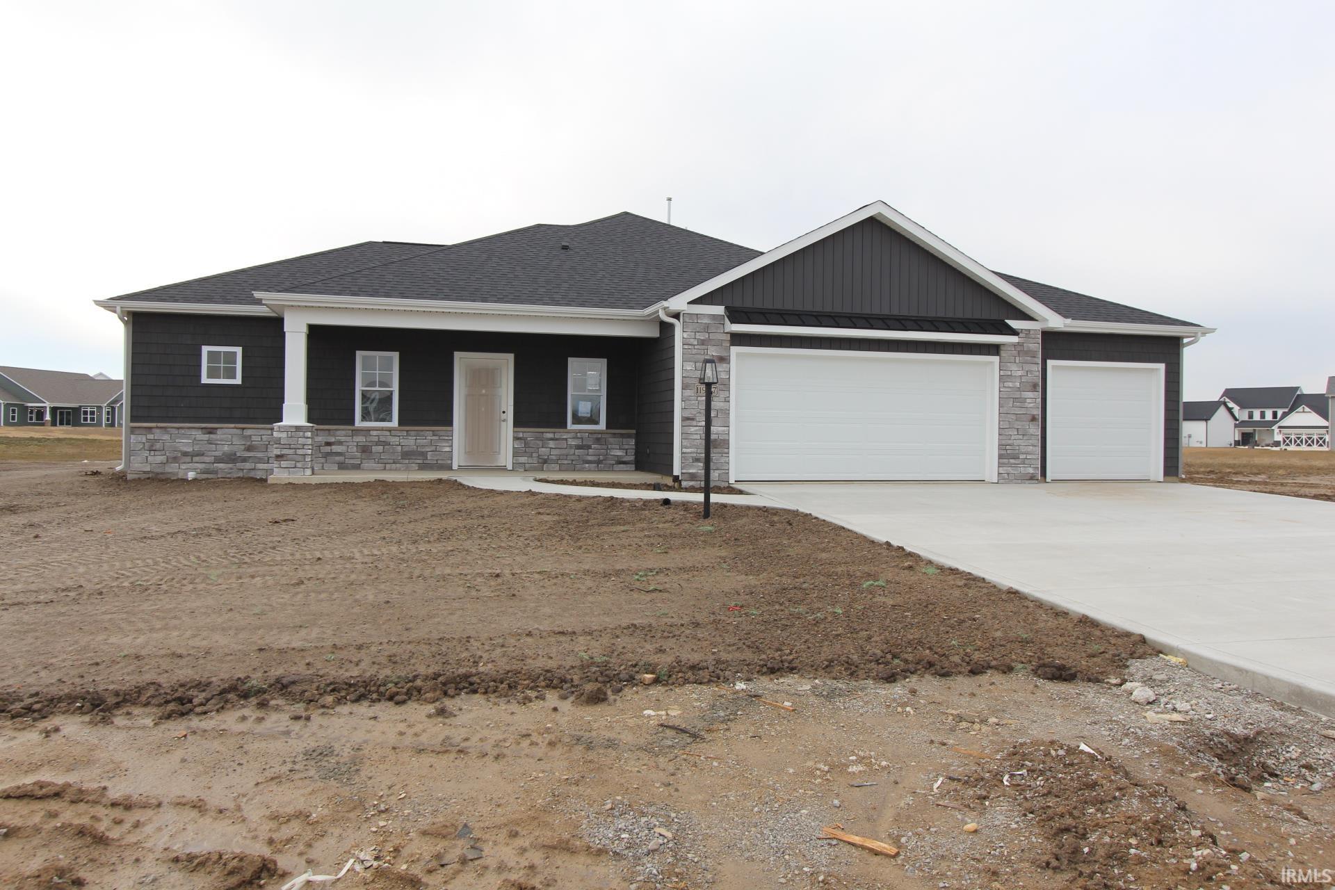 Custom home by Carriage Place Homes! Builder is offering $3000 in closing credit to the buyer! The moment you step onto the large front porch and into the foyer seeing the stained wood ceiling, will fall in love with the design. There is a walk-in entry closet giving you plenty of storage. The owner's bedroom has a view of the lake, a large walk-in closet with natural light, and a custom tile shower in the private bathroom. This floor plan is made for entertaining. The dining space is versatile with room for a seating area and just steps to the large screened porch. The vaulted family room is bright with a wall of windows looking out to the yard and lake. Standing in the quartz kitchen you have a view of the yard, the lake, the porch, and great room. The guest rooms are tucked behind the garage offering plenty of privacy from the owner's bedroom. In fact, the design is meant to give you the feeling of separation while keeping the open concept. Last but not least, the 3-car garage is extra deep and enters the home through a mud room with a custom-built storage bench. The laundry room is separated and private so you do not see the washer and dryer when you walk in! This is absolutely a must-see home.
