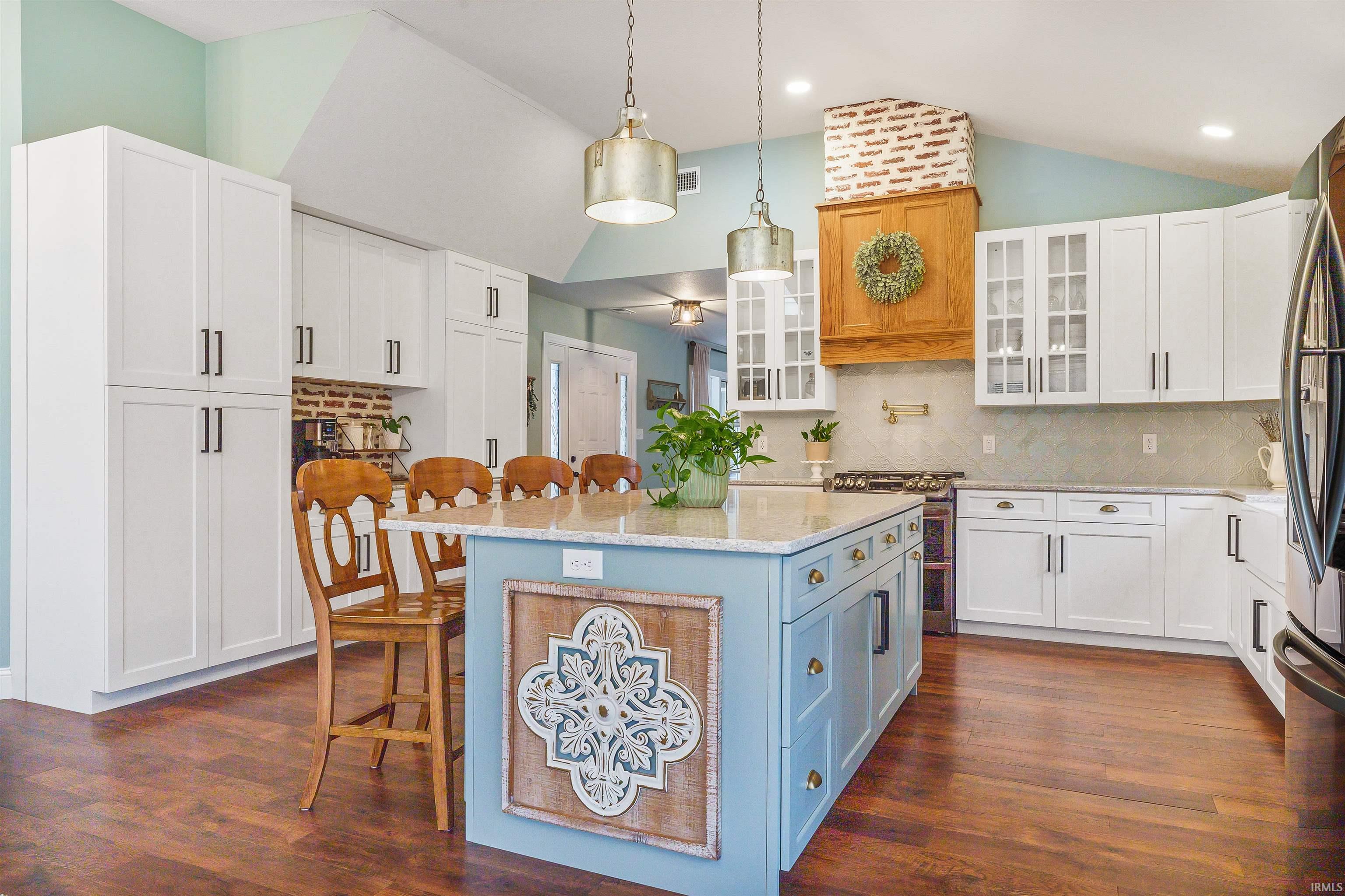 Are you ready to have your best summer yet from your very own backyard pool!? This incredible home is not just a must-see, it’s a must experience nestled on idyllic & ultra private partially wooded 1.6 acre corner lot w/ stunning backdrop of preserve-like forest for magical days at the pool! Located in a quiet & peaceful area just east of I-69, this rambling 4 bedroom, 2.5 bath ranch has so much to offer & is completely move-in ready! Although built in 1953, it has received extensive updates worth more than 100k since 2019 including entirely refreshed kitchen, new tear off roof on home & detached 3 car garage, plus all major utilities replaced (efficiency tankless water heater, hard water filtration system, etc). Sure to charm from moment you arrive, giant U shaped drive links oversized 30x40 barn (for all your tools, toys & vehicles) to impressive main entrance & attached 2 car garage. Inside front door w/ twin beveled glass sidelights you’ll find a bright & welcoming atmosphere complemented by gorgeous wood flooring, crisp white trim & accents, & attention to detail from the modern lighting elements to the spectacular open concept layout that makes the most of all the windows allowing for tons of natural light. Chef’s delight high end kitchen is show stopper w/ beautiful glass backsplash, fireclay farmhouse sink, antique brass pot filler, abundant cabinetry, black stainless appliances & sparkling quartz island w/ seating. Amazing casual dining nook off kitchen has 2 sets of triple window sliding glass doors connecting walk-out wood patio to back deck overlooking pool. Cozy seating area also off kitchen has 2 skylights & laundry zone w/ exterior access. Formal dining perfect for entertaining beside expansive living/family/game room & secluded home office. Dreamy primary bedroom features chandelier style fan, large walk-in closet w/ build-ins & en suite bath w/ walk-in shower. Remaining 3 bedrooms are all comfortably sized w/ ample storage throughout; shared full bath has tub/shower combo w/ another half bath w/ pedestal sink. Sunroom boasts wrap around views great for relaxing & watching surrounding wildlife. Big back deck is ideal for dining al fresco, sunbathing or watching others swim. Another lower wood deck by pool provides a spot to rest by the water while partial 6’ wood fence adds extra privacy. Conveniently close to nearby shopping, dining & groceries along 69 & Dupont Rds.