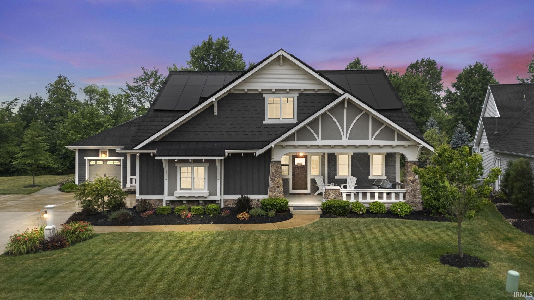 Welcome to this stunning 4 bedroom, 3.5 bath home, perfectly situated on a beautiful lot with impressive curb appeal. As you approach, you'll be charmed by the covered front porch, leading into the formal foyer entry adorned with wood floors and wainscoting. The living room invites you in featuring a tray ceiling and fireplace with custom built-ins. The gourmet kitchen is a chef's dream, offering an abundance of counter space, gas range, stainless steel appliances, and a walk-in pantry. Convenience meets style in the laundry room, equipped with a stacked washer and dryer, sink, and lockers near the 3-car garage. The master suite is a luxurious retreat, featuring a custom-tiled walk-in shower, separate tub, his & her vanities and an expansive walk-in closet. This residence boasts a full-finished daylight basement, complete for your home movie theater & a bar ready for service. Eco-friendly solar panels add to the home's appeal, making it both beautiful and efficient. Daikin Mini-split in garage. Reverse osmosis kinetico. The home also features a whole house diffuser connected to the furnace. Don't miss the opportunity to own this oasis, schedule a tour today!