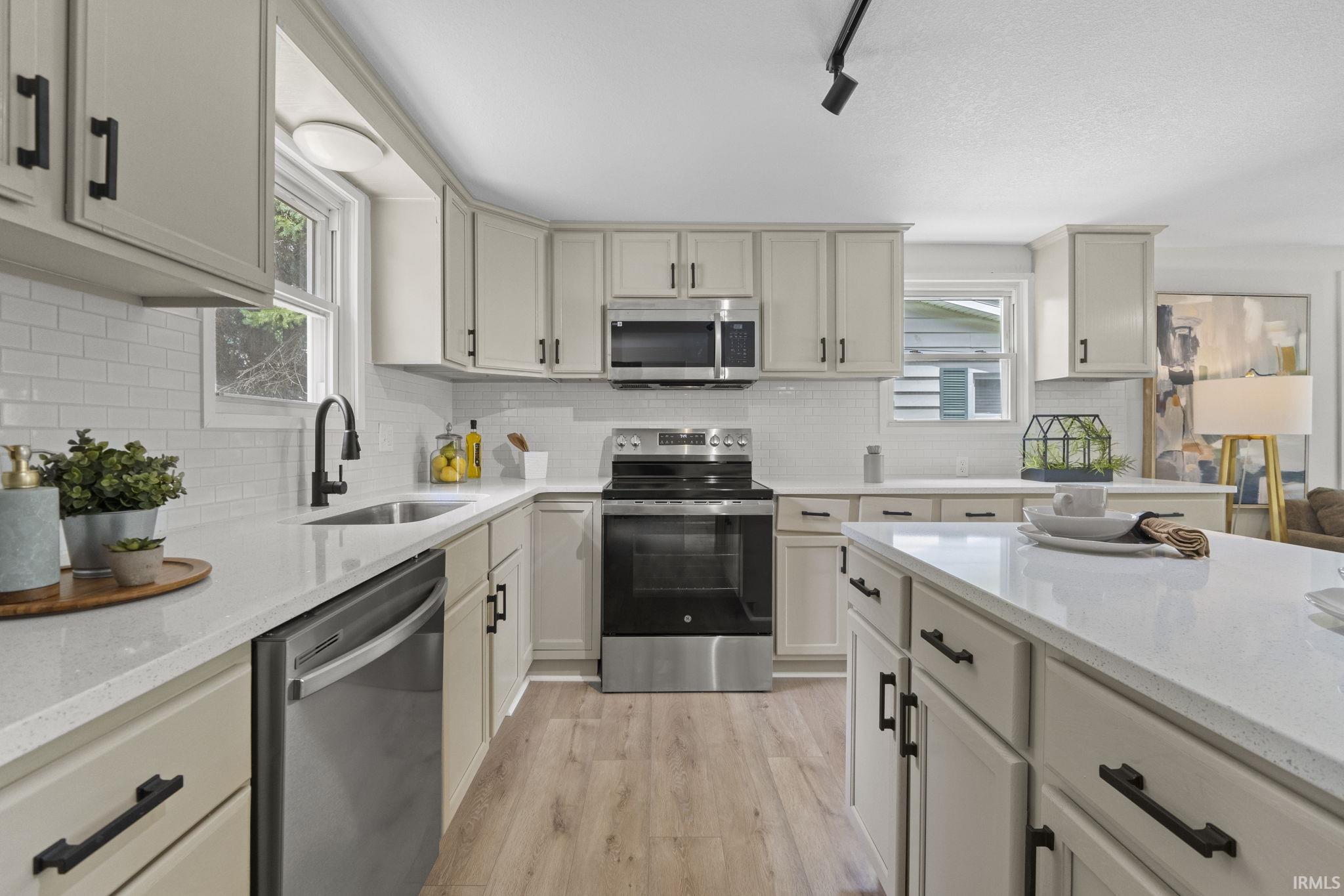 Open House - Saturday 07/27 2-4PM! Welcome to your beautifully renovated 3-bedroom, 1-bathroom ranch-style home, in a prime location close to all of your amenities. This stunning residence boasts brand new flooring throughout & features a modern kitchen with new stainless steel appliances, quartz countertops and a subway tile backsplash. The heart of the home is the open kitchen/living space with a large island and electric fireplace perfect for relaxing or entertaining guests. Each of the three bedrooms offers ample natural light, new windows and doors. Outside, enjoy the privacy of a fenced-in backyard with patio, providing a safe haven for children and pets to play freely. For those with vehicles or storage needs, a convenient two-car garage is included which could also double as a workshop. Located in a desirable Decatur community, this home is perfect for first time home buyers looking for a turnkey haven – schedule your showing today! UPDATE: Tree came down in a recent storm. Stump will be removed by owner prior to close.
