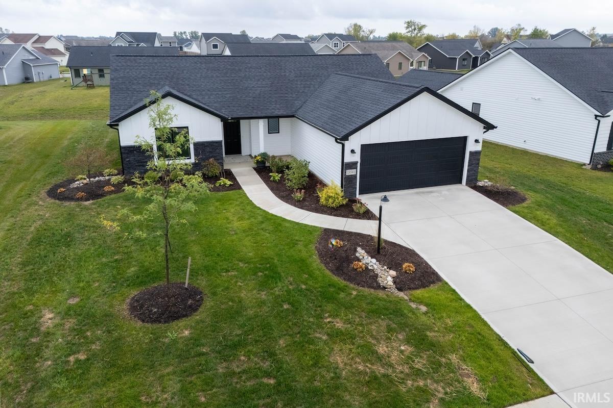 Just completed split-bedroom ranch home for sale by Granite Ridge Builders in Southwest Fort Wayne. This home features an open-concept living area, perfect for entertaining guests or spending quality time with family. The open kitchen features a stylish 6-foot island and a breakfast bar as well as a large double door pantry for all your storage needs. The great room is a stunning space with cathedral ceilings and large picture windows that let in plenty of natural light. The primary suite is a peaceful retreat with a private bath that includes a wider vanity, a large shower, and a spacious walk-in closet. The garage is painted, trimmed and has a hybrid polymer floor coating.
