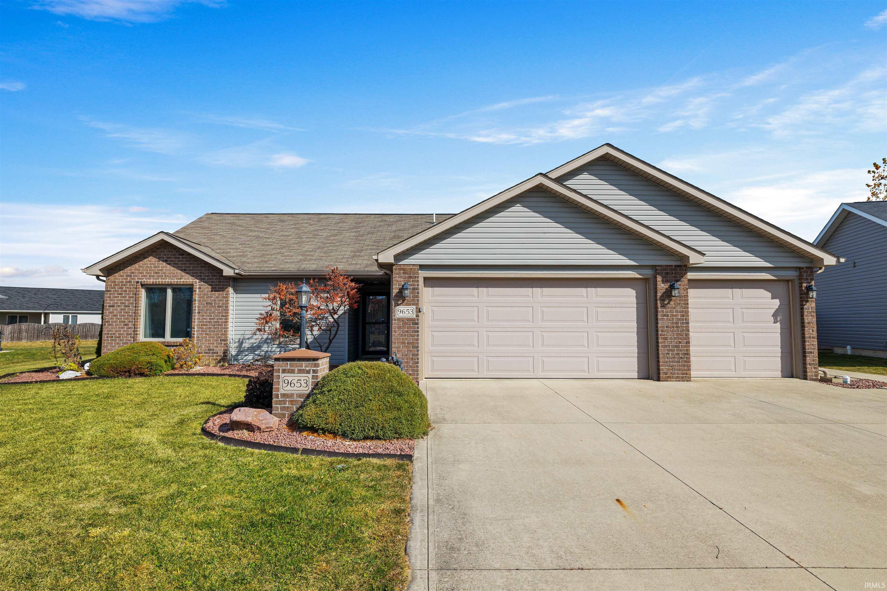 Welcome to your new home! This gorgeous, VERY WELL maintained, 3 bed, 2 bath retreat has so much to love! The open concept living area is magnificently highlighted by the large windows with farm views, and cathedral ceilings. The eye-catching island countertop is made of real walnut wood and will immediately draw you into the spacious eat-in kitchen, complimented by plenty of cabinetry and counter space. The primary ensuite is complete with a large walk-in closet and full bath. The 3 car garage offers tons of storage space complete with attic pulldown stairs. Check out this backyard! Fully fenced with a 6ft wood privacy fence, a MASSIVE 60x17 stamped concrete patio, and a relaxing gazebo create the perfect entertainment paradise. This home is the complete package!