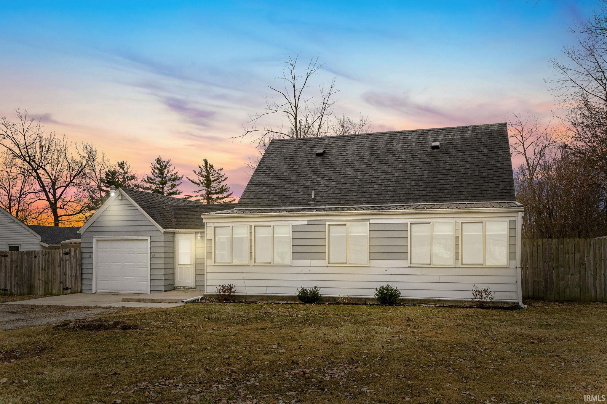 Discover the perfect blend of charm & functionality in this beautifully maintained Cape Cod home! Featuring a desirable split-floorplan, this 3-bedroom, 1.5-bathroom home offers a spacious feel with upgrades throughout. Step into the great room, where gleaming hardwood floors create a warm & inviting atmosphere. Enjoy morning coffee in the fully enclosed front porch. The kitchen boasts stylish tile flooring, crisp white cabinetry, and a full set of appliances that remain. The master suite is a true retreat, showcasing 10-foot cathedral ceilings, full-length double closets, and updated laminate flooring. A newly updated vanity & flooring add a fresh touch to the half bath. Upstairs, a versatile loft area leads to an additional bedroom with a generous walk-in closet—perfect for guests, a home office, or a creative space. The unfinished basement offers endless potential for storage or future expansion. Enjoy outdoor living on the expansive 0.67-acre fenced-in lot, complete with a large patio ideal for entertaining. Located just outside city limits, this home provides the perfect balance of convenience & freedom for your lifestyle needs.
