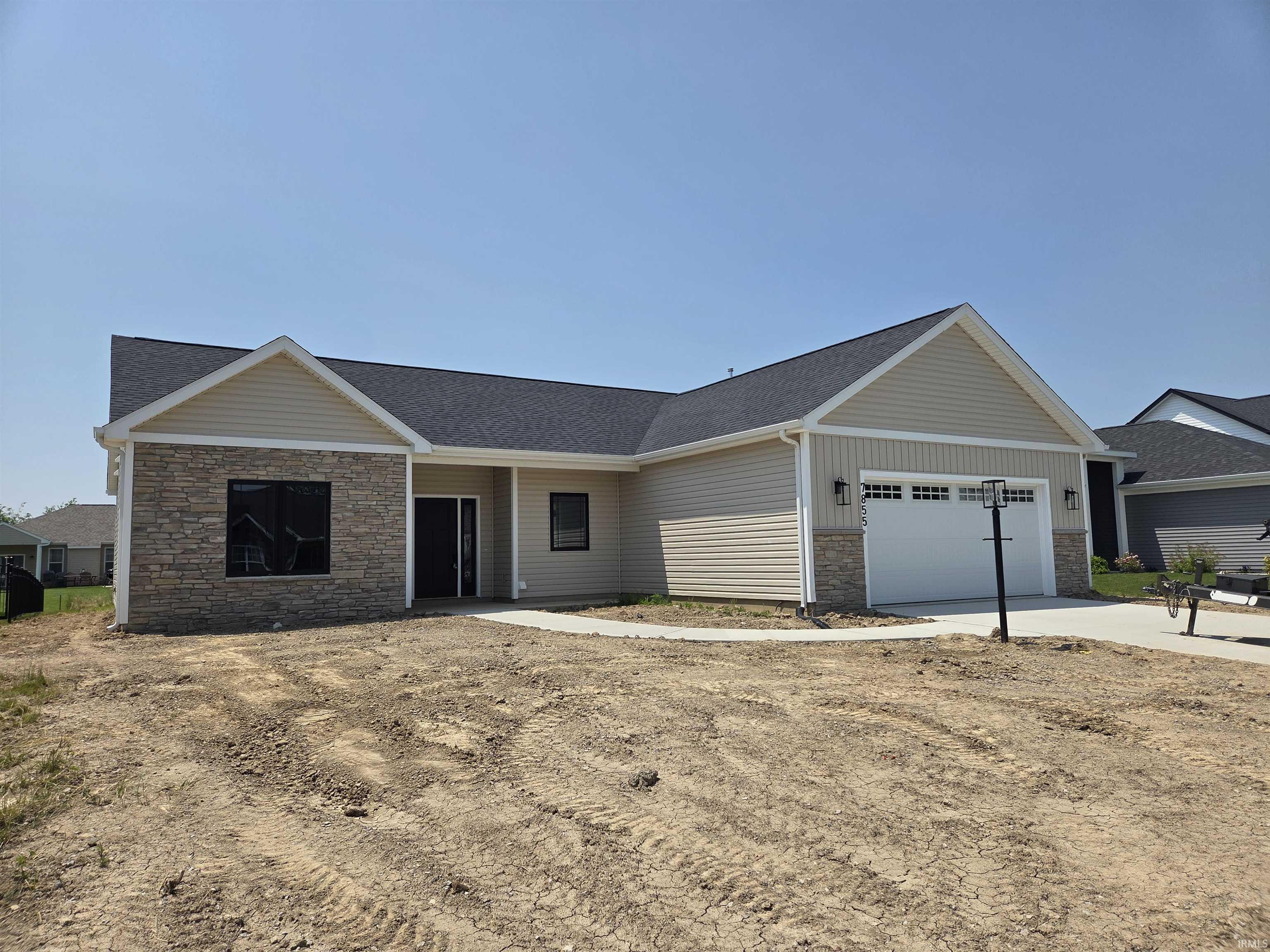 This quality new construction, offers 1,621 square feet of thoughtfully designed living space. An inviting entryway welcomes you into the home, where you’ll find three spacious bedrooms and two full bathrooms—perfectly balancing comfort and functionality. At the heart of the home is the expansive great room, featuring a beautiful stone fireplace, ideal for cozy evenings. The great room seamlessly flows into the modern kitchen, making it an inviting space for both entertaining and family gatherings. The kitchen boasts a center island, quartz countertops, and cabinets that reach the ceiling for a sleek, spacious feel. Throughout the home, laminate wood flooring enhances the entry, great room, kitchen, dining area, and laundry room. A two-car garage adds convenience and ample storage space. THIS HOME IS CONVENIENTLY LOCATED CLOSE TO 1-69-1-469 AMPLE SHOPPING AND RESTURANTS