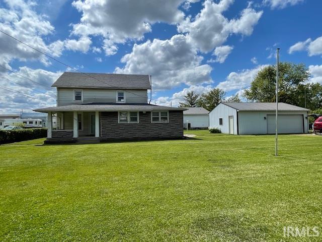 INVESTORS TAKE NOTE! Great home to redo inside to your style! Nestled on two lots, this older home provides a fabulous yard with mature trees, half circle drive off the alley for easy access and is just off of Business 24 in quiet area. With 1428 sq ft it features a great covered front porch entry into the Formal LR, Formal DR, spacious full bath with huge closet, Breakfast area, and big kitchen w/Vintage Kitchen Sink! Huge Landing area upstairs could be used as bedroom w/2 rooms used as bedrooms off to the side. NEWER Gas Forced Air Furnace, Water heater, and Cental AC. Window unit upstairs stays. Refrigerator, Gas Range, Washer/dryer all stay with house. All will love the 24' x 30' Pole Barn Garage, workshop area with 8' x 16' Overhead Door cement floor, outlets and lighting. This home is ready for you to call it HOME! Some replacement windows throughout and parking out front as well. No FHA VA USDA Loans. Sold As Is, sellers not able to make any repairs. Buyers Agent to verify schools.
