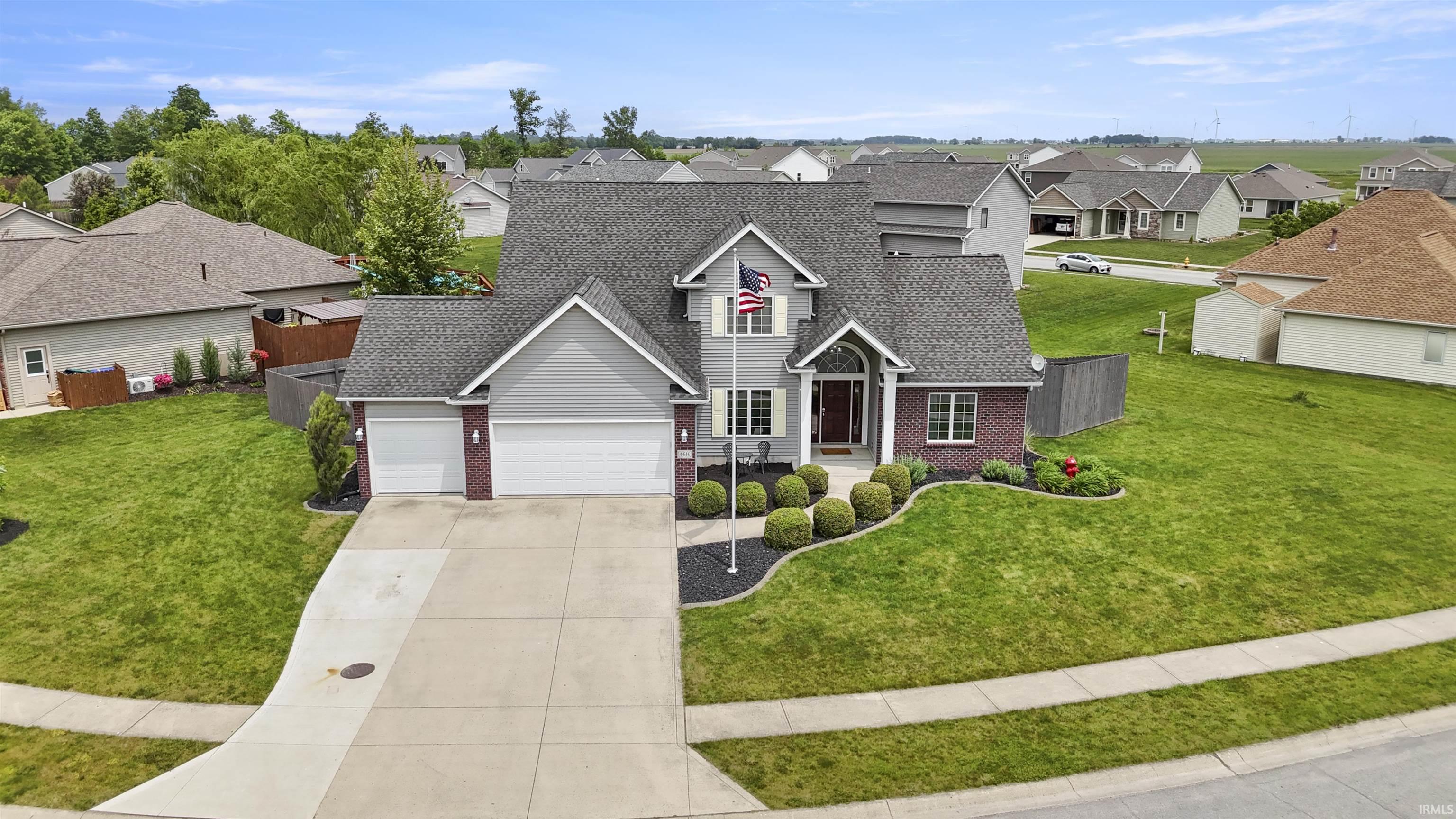 Light, Space & Style on Homestead Trail! Step inside this beautiful 2-story filled with natural light and thoughtful design. The living room boasts a soaring cathedral ceiling, a loft overlooking the space, and a cozy fireplace that sets a warm, inviting tone. Enjoy 4 generous bedrooms, including a main-level primary suite with a giant walk-in closet and a spacious bath featuring both a shower and a relaxing tub. The wide-open kitchen offers loads of counter space and room to cook, gather, and create. Outside, the fenced yard features a composite deck, stamped concrete patio, and a private side deck perfect for quiet mornings or evening unwinding. A 3-car garage and beautiful landscaping complete the exterior, while the large basement adds even more space with a full bedroom and a giant bonus room ready for whatever you need.