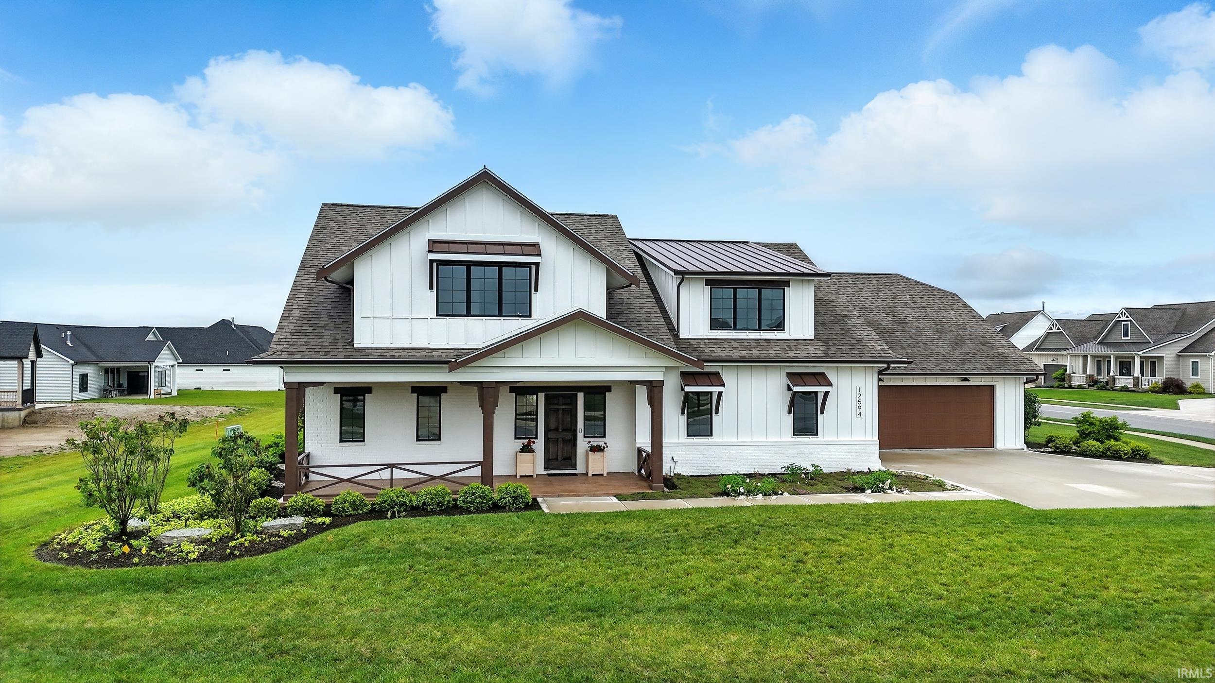 Don't miss this modern cottage with all the details that make a house a home. Enter via a large stamped concrete covered porch into an oversized foyer with two walk-in storage closets. The open concept living room, kitchen and dining room welcomes you with luxury vinyl flooring throughout, a gas fireplace and custom built-ins. The kitchen features an 8' island with custom cabinets and Kitchen Aid appliances including an apron front stainless steel sink, built-in convection oven/microwave combo, a gas 6-burner cooktop, french door refrigerator with cold drawers and pull out freezer, dishwasher and custom range hood. The dining room opens into a charming sunroom with a second wood burning, stone fireplace and a private courtyard patio- both with cobblestone concrete floors. A home office, spacious laundry room with sink, powder room and mudroom with custom built in lockers completes the main floor amenities. Upstairs the home features three bedrooms and two full baths. Two of the bedrooms are oversized and could be used as flex/rec space or a bedroom - all bedrooms have walk in, custom closets. There is also a walk-in attic for easy storage access. Loads of custom touches like quartz in kitchen, bathrooms and laundry; vertical shiplap accent walls, stained wood doors; custom lighting, wide staircase and custom built ins; fully landscaped with landscape lighting; Tesla car charger, Aprilaire humidifier and tankless water heater. Don't miss this charming modern cottage and all the extras that make it an instant home!