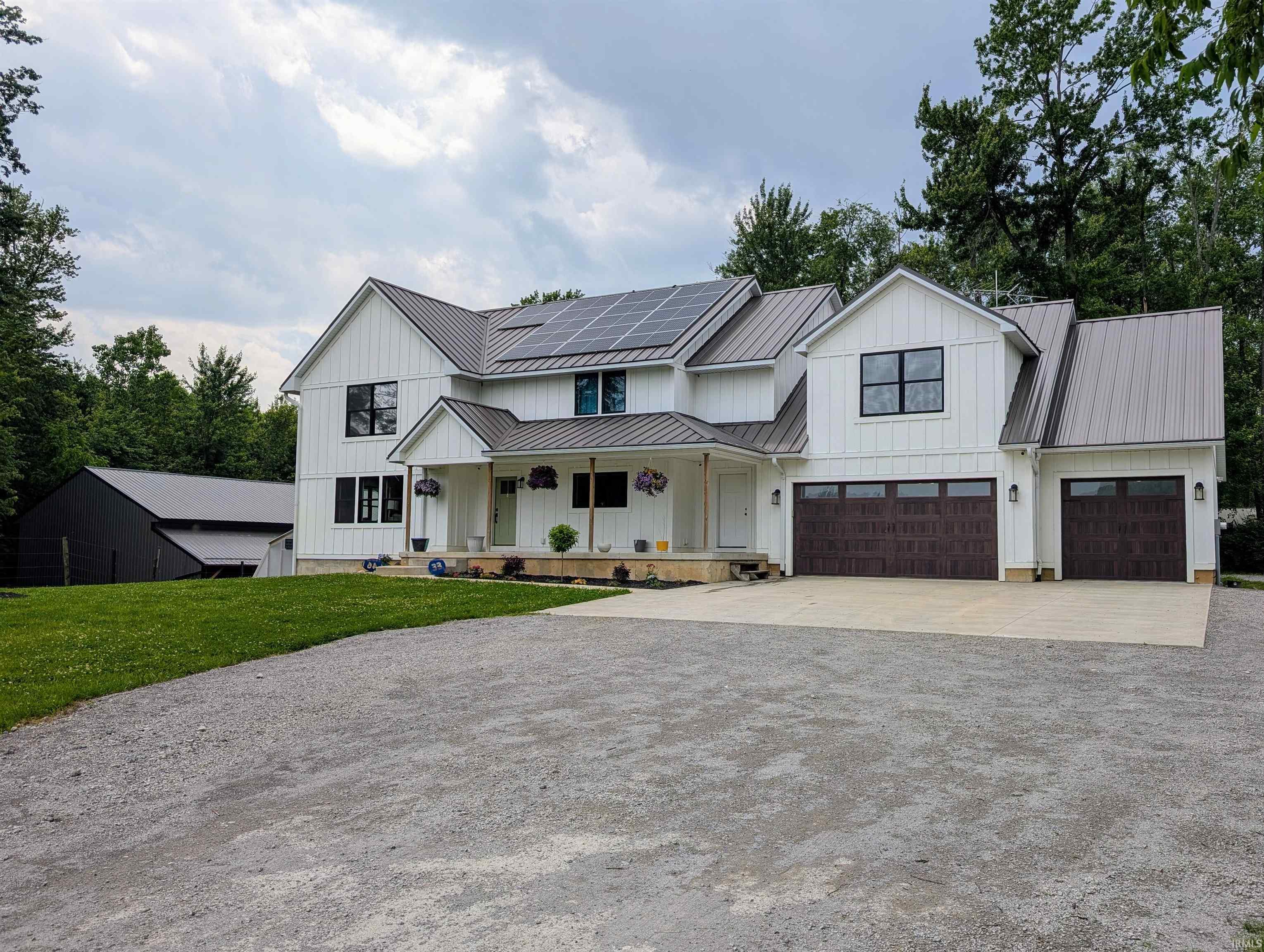 Discover this charming custom built home located on over 7 partially wooded acres in Syracuse, IN, featuring a spacious layout with multiple bedrooms and bathrooms. The house boasts a welcoming living area, appropriate for relaxation and entertaining. The kitchen offers ample counter space and cabinetry. The 3 car garage and full unfinished walk out basement leave plenty of room for storage and there is an attached 8x34 greenhouse for all the plant lovers out there. Enjoy outdoor activities in the generous yard space surrounding the home with a 34x56 barn and 1.5 acre pasture. Conveniently located near local amenities and attractions, but on a quiet country road this residence provides a wonderful opportunity to experience comfortable living.