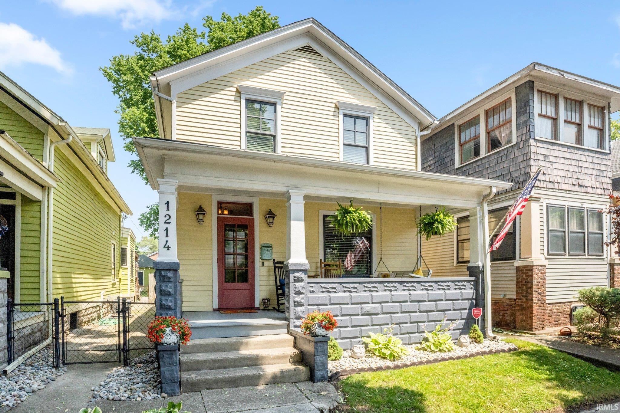 Beautifully renovated and full of charm, this two-story home in the sought-after West Central neighborhood seamlessly blends historic character with modern updates. Hardwood floors, beamed ceilings, and original staircase woodwork add warmth throughout, while the spacious layout offers a seamless flow from the welcoming front porch to the living and dining room, and into the open kitchen—complete with ample cabinetry, island with breakfast bar and built-in mini fridge, and a wall oven/microwave combo with its own crisper. With 3 bedrooms and 2.5 baths, including a stunning primary suite with dual walk-in closets and a main level flex bedroom/office with a Murphy-style bed, this home offers versatility and comfort. Relax out back on the covered deck surrounded by flower-accented privacy fencing, enjoy music through the built-in speaker system, and take advantage of the updated garage with insulation, drywall, and cabinetry. Even the refreshed front porch is ready to welcome you home. Located within walking distance of Electric Works and near Promenade Park, local eateries, and entertainment!