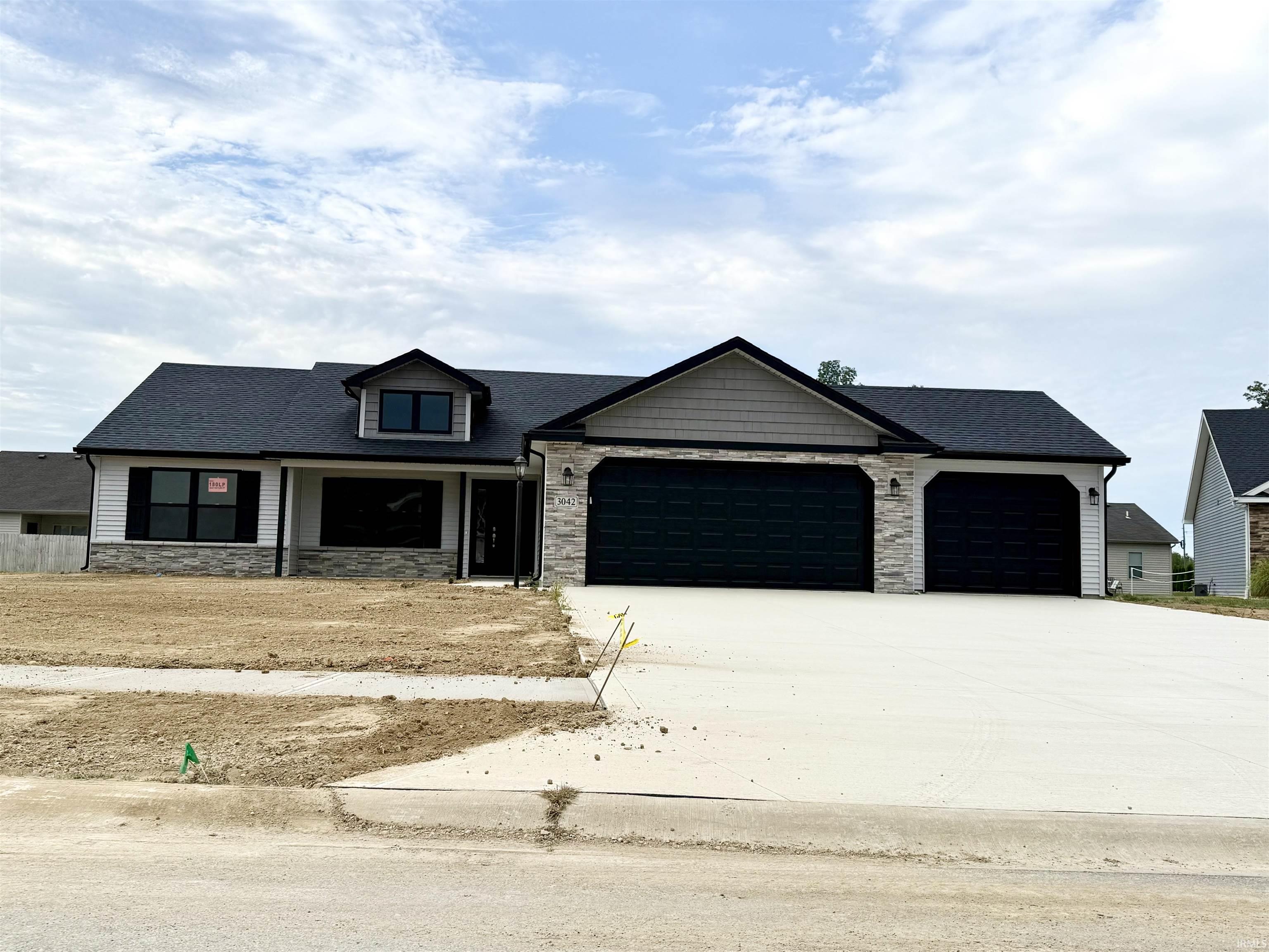 Brand new home built by Ideal Builders under construction and soon to be ready for its first owners. One of Ideal's newer floorplans, this open concept Hadley floorplan showcases 3 bedrooms, 2 full baths, and 1507 square feet. Enter the front door under the covered front porch and you'll be greeted by a spacious great room with chamfer ceiling, ceiling fan, double windows (Andersen Brand), and dormer window allowing extra light. Open concept from the great room to kitchen with large center island with breakfast bar, built-in shelving, and pendant lighting over the island. Upgraded hickory cabinetry in the kitchen and baths. Large 4'x4'corner walk-in pantry and upgraded quartz double bowl kitchen sink with spot resistant pull-out kitchen faucet, double pull-out waste basket, and upgraded premium kitchen countertops. Stainless steel microwave and dishwasher included in sale. Locking vinyl plank flooring and quarter round in all areas except the bedrooms and bedroom closets. Rounded drywall corners throughout home as well as upgraded trim. Primary bedroom has its own en-suite with extra tall vanity, 5' walk-in shower with rain shower head, elongated toilet, upgraded bath fixtures, and cultured marble vanity top with wave bowl. Spacious walk-in master closet has pocket door. Split bedroom floorplan with bedrooms 2 and 3 located on the other side of the home as well as the second full bath with tub/shower combination, elongated toilet, upgraded bath fixtures, and cultured marble vanity top with wave bowl. Upgraded interior and exterior lighting throughout home. Attached 3 car garage with pull-down staircase to attic, garage door opener for the 3rd bay as well, and wireless keypad for easy entry. Upgraded Craftsman style interior doors with lever hardware. Architectural roof shingles. 95% efficient gas furnace and central air conditioning with fresh air ventilation system. Landscaping package included in sale and includes rough and final grading, seeding, 3 CY mulch beds, 10 shrubs (or hosta substitutes) and 2- 1 3/4"diameter trees. Estimated completion is mid-September.