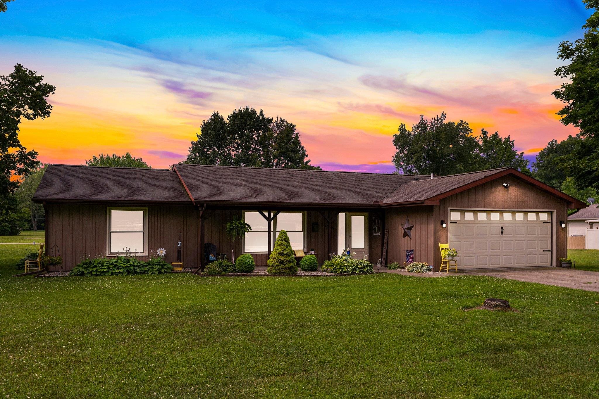 This beautifully maintained 3-bedroom, 2-bath home offers the best of all worlds...a combination of space, privacy, and location. Tucked in a quiet area that feels like a retreat from the city, nestled on a 188x100 lot, giving you just under a half an acre—yet just minutes from shopping, dining, and schools. The thoughtful split floor plan centers around a spacious thoughtfully designed living, dining, and kitchen area—perfect for relaxing or entertaining. The attached 2-car garage includes a bonus storage room that can be used for extra organization or converted for additional garage space. Step outside to a peaceful back patio designed for quiet evenings or casual gatherings. The welcoming front porch adds charm and character, while the large lot offers plenty of room to enjoy both indoor comfort and outdoor freedom. Whether you're looking to slow down, spread out, or simply enjoy a move-in-ready home in a convenient location, this one is ready to welcome you.