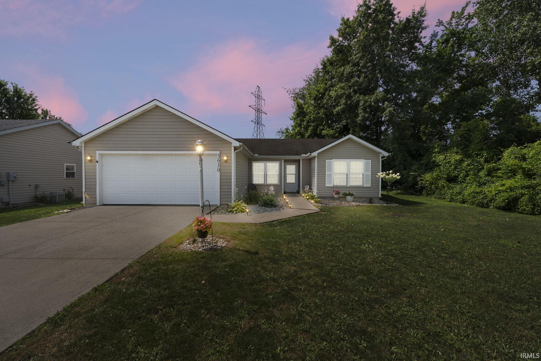 Tucked away at the end of a quiet street and surrounded by a natural wooded backdrop, this inviting ranch offers a rare combination of seclusion and convenience to nearby dining and shopping. Inside, you'll find a functional split-bedroom layout with three spacious bedrooms and two full baths. The open-concept great room features vaulted ceilings and picturesque backyard views, creating a warm and welcoming space for everyday living or entertaining. The kitchen provides ample cabinetry and flows seamlessly into both the living and dining areas, while a separate laundry room adds convenience. The primary suite includes a private bath and generous closet space, and the additional bedrooms offer flexibility for guests, work-from-home needs, or hobbies. Step outside to a private backyard retreat complete with a cozy fire pit—ideal for relaxing evenings. An attached two-car garage with keyless entry completes this well-cared-for home. Don’t miss the opportunity to make it yours—schedule your showing today.