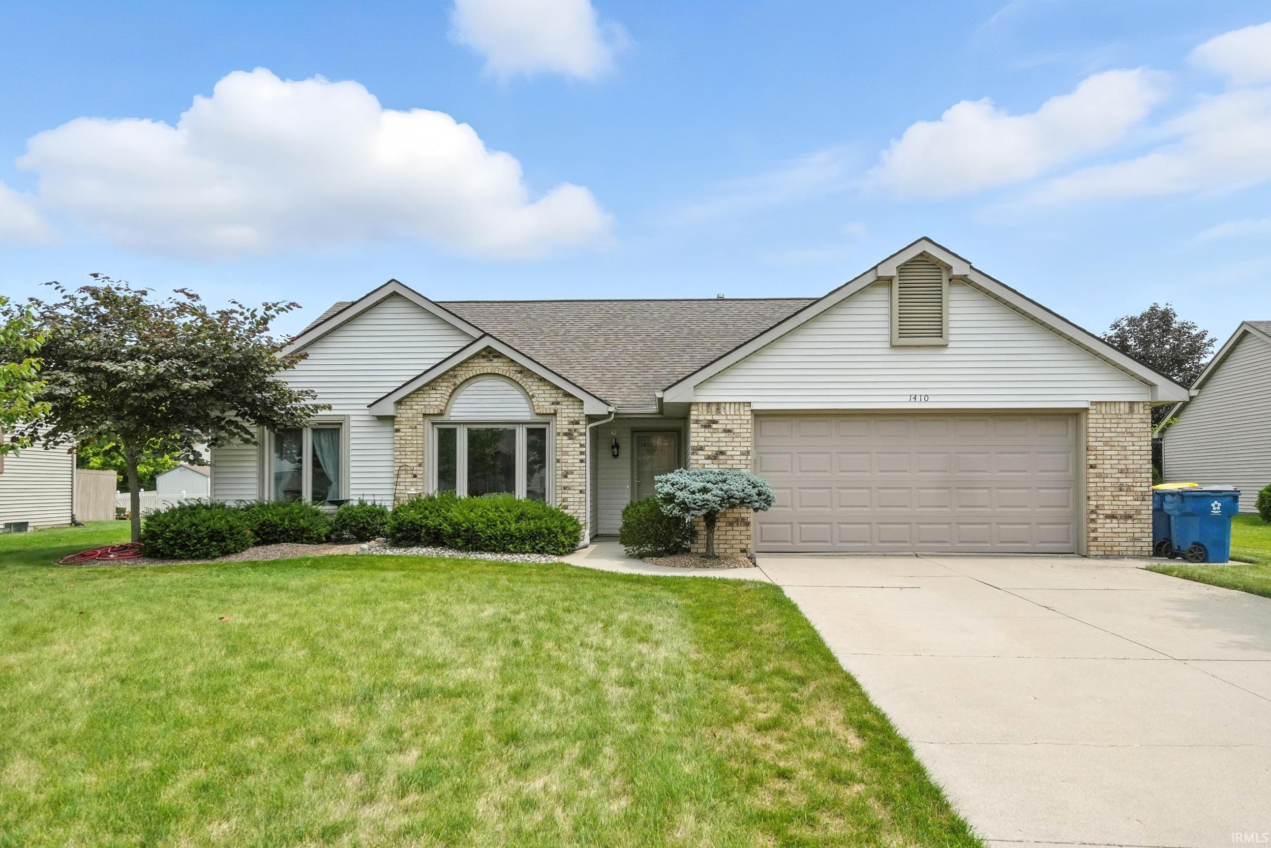 Move-in ready 3 Bedroom, 2 Bath Ranch in desirable Duesenberg Place! This charming home welcomes you with a covered front porch and a formal foyer entry. Step inside to find updated flooring and a spacious great room featuring cathedral ceilings and oversized triple windows that flood the space with natural light. The open-concept kitchen and dining area are ideal for entertaining, with a vaulted ceiling, ample counter space, breakfast bar, and a corner pantry. A generous breakfast nook with rear bump-out offers room for a large dining table and overlooks the backyard. The private primary suite is situated at the rear of the home and includes double closets and a full en-suite bath. Two additional bedrooms offer excellent natural light and generous closet space. Additional features include a 2-car garage and a large 16x10 shed with a durable metal roof—perfect for storage or hobbies. A wonderful place to call home!