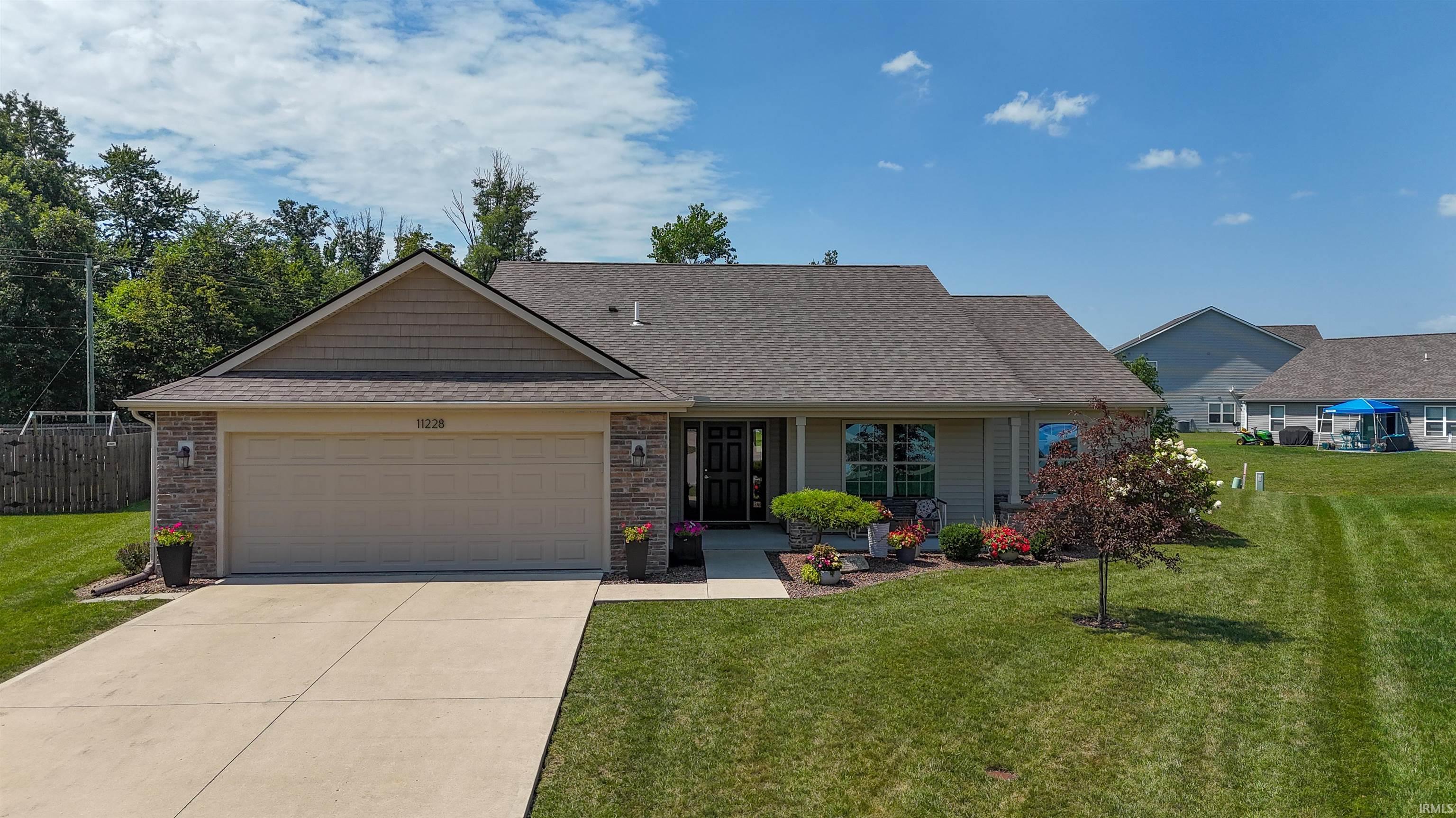 Welcome to this beautifully maintained 3 bedroom, 2 full bathroom, 1700+ square foot, ranch home in Southwest Allen County! This large, cul-de-sac lot is located in the highly desired Aurora Coves subdivision. Walking into the home, you will be greeted by high ceilings and a floor-to-ceiling stone, gas fireplace in the living room. In the kitchen, you will find a huge kitchen island for all your counter space, along with a surplus amount of cabinets and pantry space! This home features a split bedroom floor plan, including a spacious primary suite with a walk-in shower and walk-in closet. The other two bedrooms are large spaces with plenty of closet room and can be converted to either an office or play playroom! Conveniently located next to the bedrooms is a spacious full bathroom! Off of the kitchen you will find the laundry leading out to the unique 3 car tandem garage which allows the next owners the flexibility of 3 parking spaces, extra storage, or a workshop! On the exterior you will find well maintained landscaping and 2 beautiful covered porches that are perfect for gathering and relaxation! Don't miss out on your opportunity to check this one out...it won't last long!