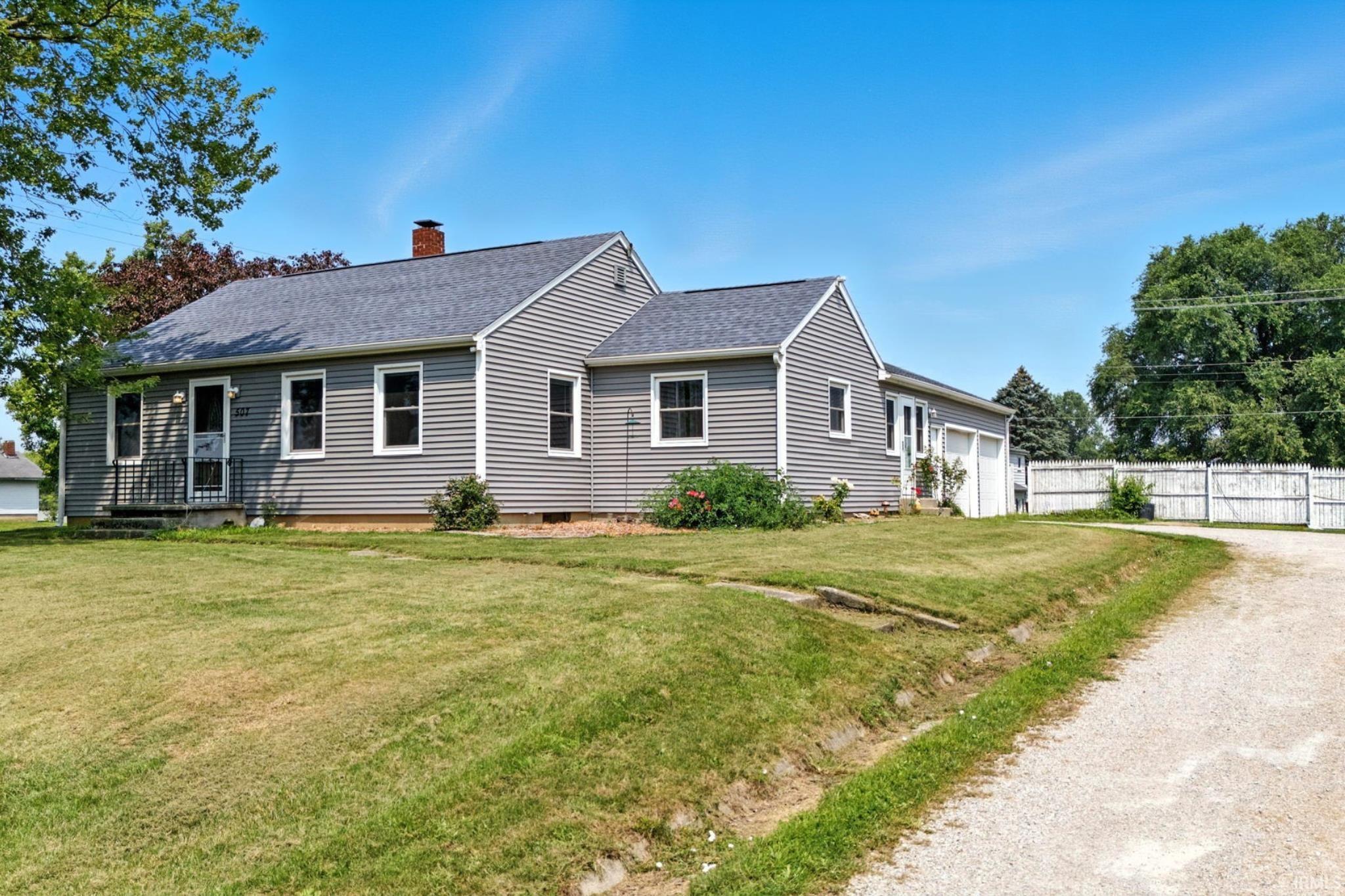 Welcome to this beautifully updated 3-bedroom, 1.5 bathroom home on an oversized lot in Ashley, Indiana. This property includes three parcels totaling nearly 1/2 of an acre, offering a spacious yard perfect for outdoor activities, gardening, or creating your ideal backyard oasis. The home has seen extensive updates including all new windows (garage windows excluded), new siding, roof, gutters with guards, and exterior doors. Inside, you'll find new flooring throughout and refinished original hardwood floors protected beneath the new vinyl plank. The living room features a charming archway and a new ceiling fan, and updated light fixtures have been added to the kitchen, entryway, hallway, and bedrooms. The kitchen is generously sized with new cabinet hardware, fresh paint, and new countertops. The bathroom has been fully renovated down to the studs and now includes a new tub, sink with countertop, updated outlets, and stylish fixtures. Additional features include a spacious unfinished basement with laundry area and plenty of room for future finishing or storage, as well as a two-car attached garage. Located in a quiet town with easy access to I-69, this home is an ideal choice for commuters or anyone looking for peaceful small-town living with convenient travel options. Don’t miss the opportunity to own this move-in-ready home with character, space, and modern updates throughout.