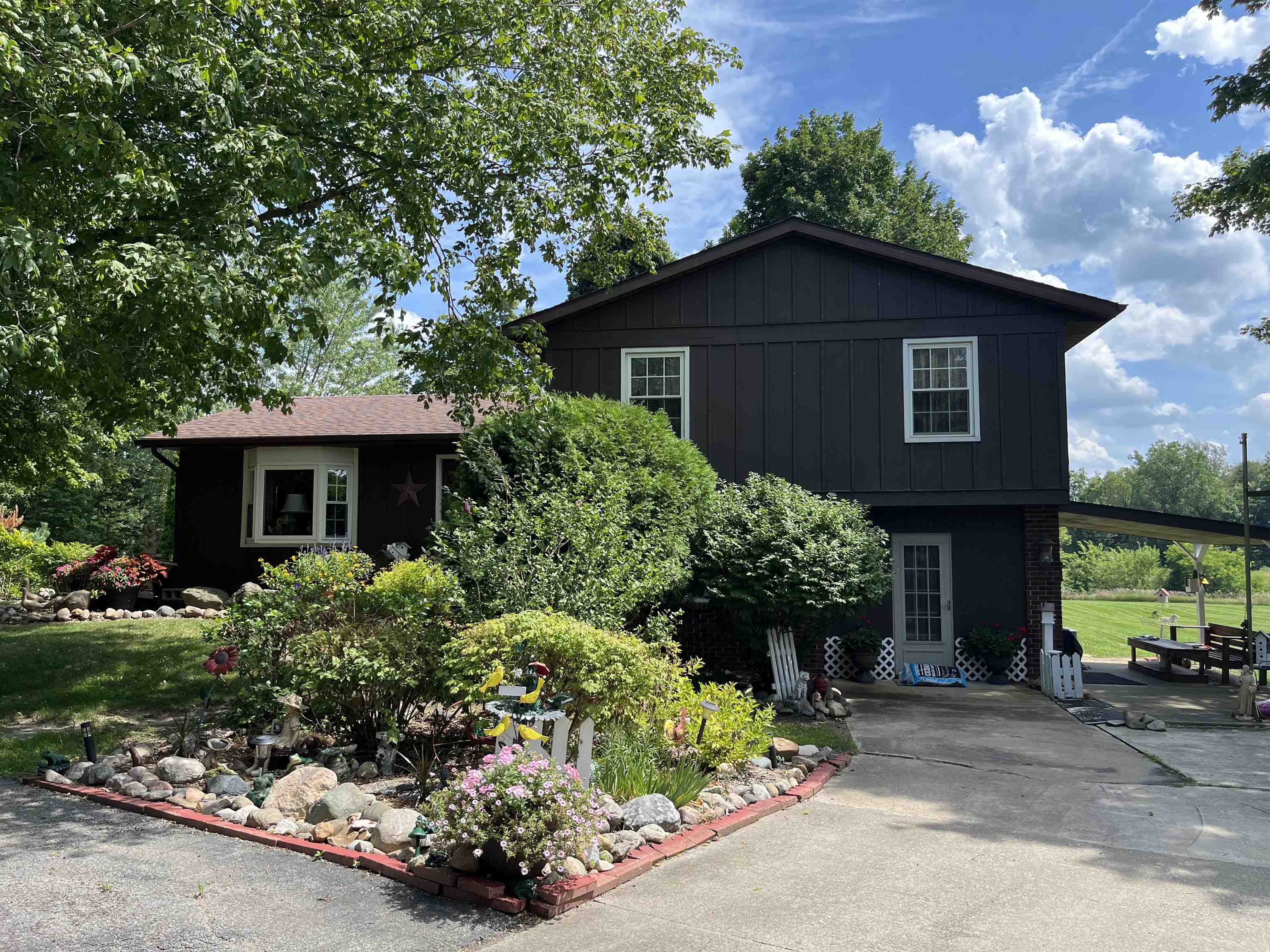Charming Country Home Near Columbia City – 3.5 Acres with heated Pole Barn. Enjoy country living just minutes from Columbia City with this spacious 3-bedroom, 2-bath split-level home set on 3.5 beautiful acres. Inside, you'll find a thoughtfully designed layout featuring a finished basement and a dedicated office space—perfect for working from home or managing daily tasks. The home boasts newer windows for improved energy efficiency, along with plenty of natural light throughout. The master bedroom has a separate enterance to the upstairs bath. Both the water heater and water sofener are new. Outside, the expansive lawn includes a charming bridge walkway, an oversized deck for entertaining or relaxing, and a variety of blooming plants and mature trees, including apple and pear trees. A large pole barn offers versatile storage or workshop space. With easy access to Warsaw, Fort Wayne, and Columbia City, this property blends country life with convenient commuting options.