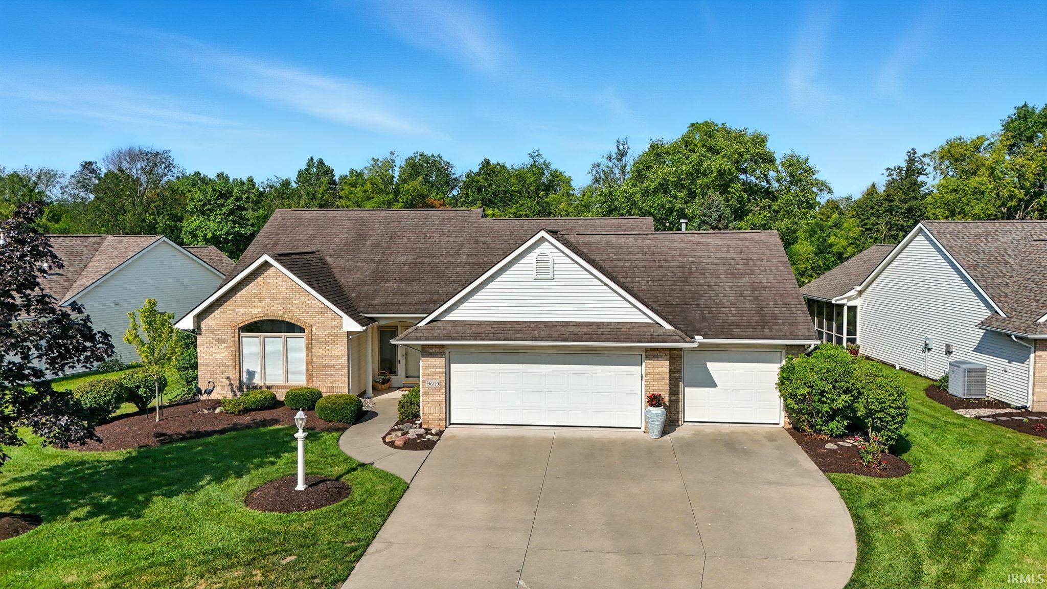 Waterfront luxury awaits in this beautifully remodeled 3 bedroom, 2 full bath villa in the Villas at Dawson Creek! Conveniently located close to the Dupont YMCA and Pufferbelly Trail. Every surface in this beautiful villa has recently been updated. The kitchen features newly painted custom kitchen cabinets, leathered granite countertops, and new appliances. The great room offers a soaring cathedral ceiling with beautiful lighting and luxury vinyl plank flooring throughout most of the main floor. Adjacent to the kitchen area is an amazing 4 season room with walls of windows overlooking the tranquil pond with fountain feature. The primary suite offers a private ensuite with large walk-in closet, a stunning walk-in tiled showers, large soaker tub, quartz countertops, and egyptian marble sinks. Two additional bedrooms also feature walk-in closets. New ceiling fans and light fixtures throughout. A spacious three-car garage offers plenty of storage, and a brand-new roof is being installed for peace of mind. Relax with on the large patio that also offers tranquil water views. The 3 car garage offers a workshop area with cabinets & countertops and a new stainless task sink. There is not currently a homestead deduction for property taxes. HOA dues are $583 per quarter. Lawn maintenance, snow plowing 2+ inches, bush trimming & mulching of front landscape beds, painting of garage doors & front exterior trim as needed, irrigation system & pond maintenance.