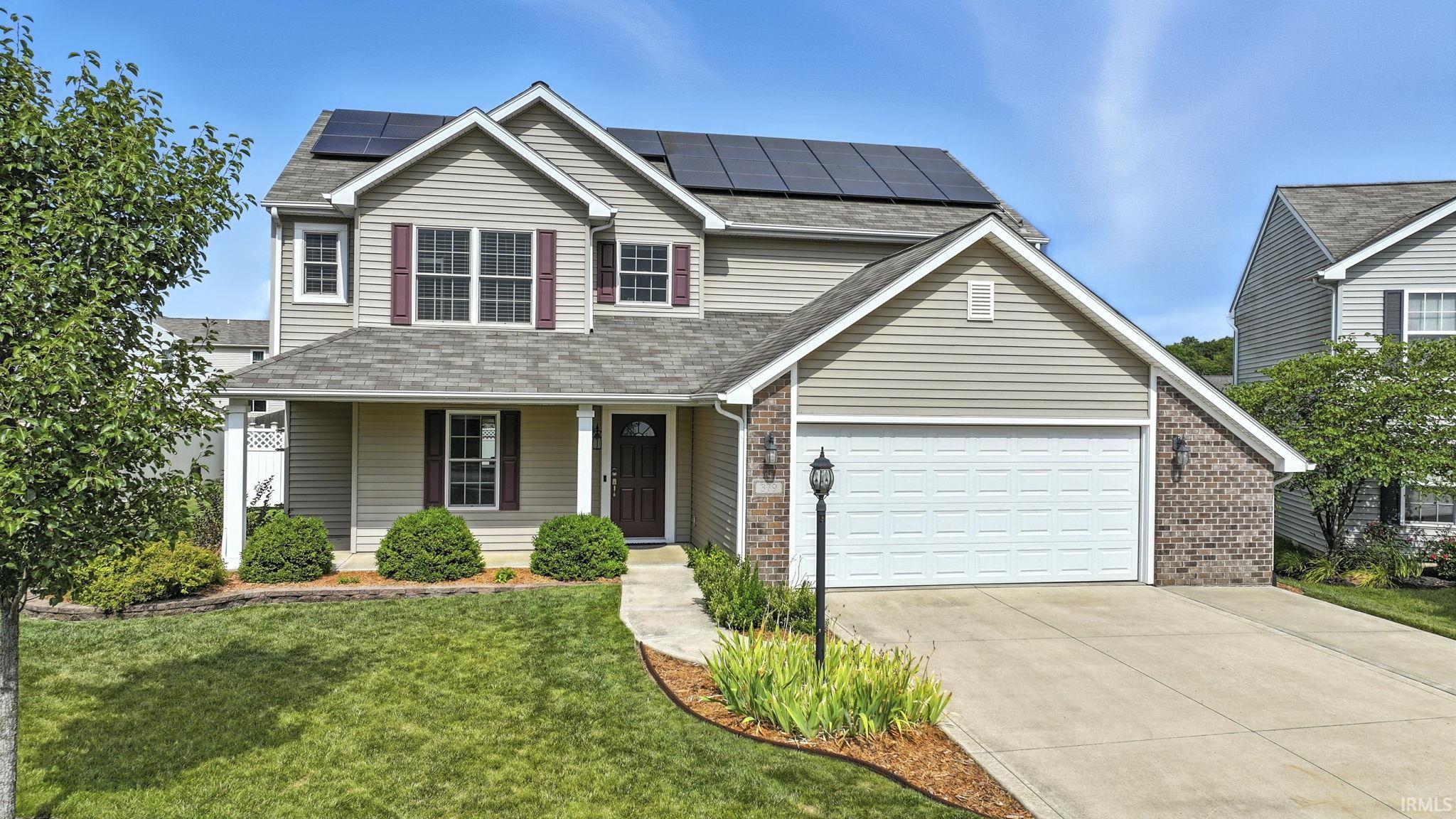 Tucked away on a quiet cul-de-sac, this impeccably maintained 4-bedroom, 2.5-bath home offers the perfect blend of comfort, convenience, and efficiency. The open floor plan features a spacious kitchen with generous pantry, stainless steel appliances including a double oven, and sizable breakfast nook that flows seamlessly into the bright family room featuring a cozy fireplace. The sliding glass door off the kitchen steps onto a concrete patio equipped with outdoor speakers—ideal for dining and entertaining. Enjoy backyard living within the 6-foot vinyl privacy fence (2018), offering plenty of space for kids, pets, and gatherings. A convenient first-floor powder room and separate laundry room with additional refrigerator add extra functionality. Upstairs, you’ll find four generous bedrooms and two full baths. The master suite includes a walk-in closet, double vanity, and a beautiful floor to ceiling tiled walk in shower. The true highlight is the home's solar power! Current owners pay zero dollars in monthly electric energy bills—a huge long-term advantage for savvy buyers looking to save while living sustainably. (See attached document for additional solar info/highlights). This home is loaded with modern smart-home features designed for convenience and peace of mind. Wiring for home audio throughout offers enhanced music and entertainment enjoyment. Motion-activated lighting in the kitchen, security alarms on every exterior door, and outdoor lighting with various feature options, add both style and safety. Outdoor lighting is effortlessly controlled from a single convenient app—making daily living easier and smarter. This home has been pre-inspected for your peace of mind. Nestled on a quiet cul-de-sac, a family-friendly layout, energy efficient, and all within the highly desirable Southwest School District, this one checks all the boxes.