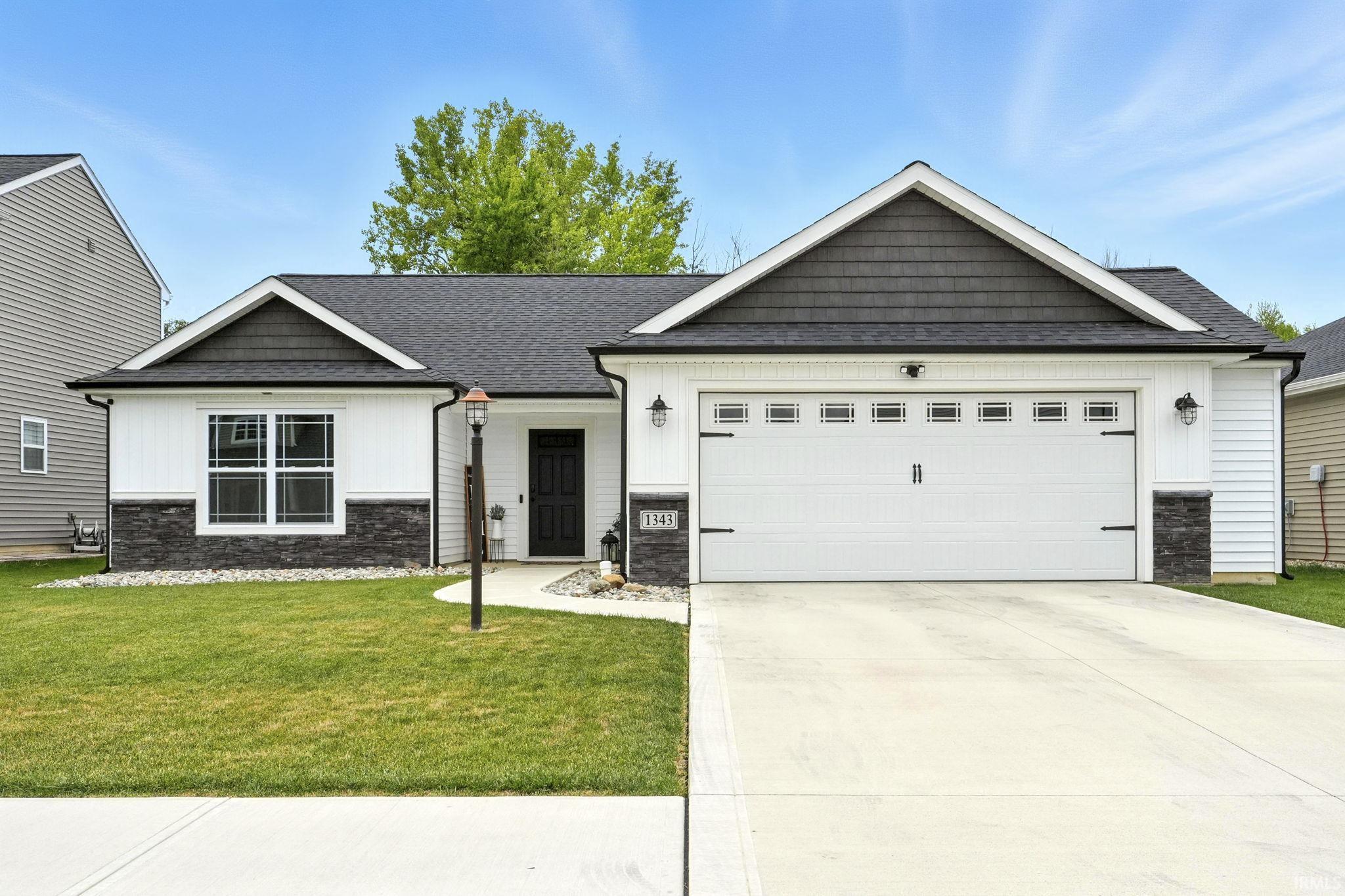 Move-in ready 3 bedroom, 2 bath ranch in the highly sought-after Northwest Allen County School District! This like-new home offers a split-bedroom, open-concept layout with a spacious living room featuring cathedral ceilings and a modern fireplace with shiplap surround. The kitchen boasts painted cabinets, a large island, stainless steel appliances, and subway tile backsplash, all tied together with durable vinyl plank flooring. The private primary suite is set apart from the secondary bedrooms, while a screened-in porch extends your living space outdoors. Skip the hassles of new construction—this home already includes an established yard, landscaping, and window treatments. Conveniently located near schools, shopping, and dining, this home blends modern comfort with everyday convenience.
