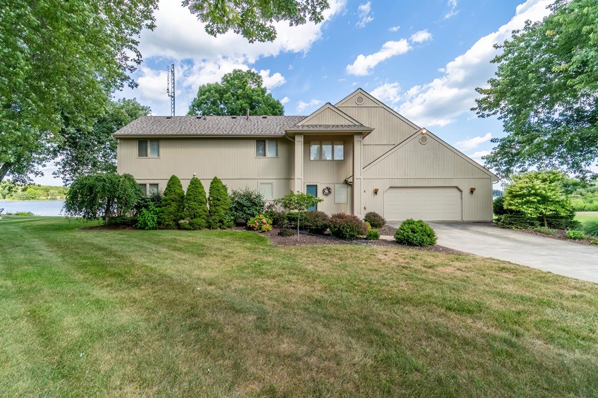Enjoy 123 feet of pristine lakefront on peaceful Round Lake, with direct access to the all-sport excitement of Clear Lake. For an exterior video of this property copy and paste this link: https://go.screenpal.com/watch/cTjUojn2SDA This spacious 4-bedroom, 3-bathroom retreat offers the perfect blend of tranquility and recreation. Step into the expansive great room with soaring vaulted ceilings, a cozy gas fireplace, and seamless access to the lakeside deck—ideal for morning coffee or sunset gatherings. The open-concept living room flows into a well-appointed kitchen and a separate dining room featuring hardwood floors and entry to a charming screened porch overlooking the water. The main-level bedroom suite provides comfort and convenience, while three additional suites upstairs offer privacy for family or guests. An oversized two-car attached garage with workbench completes the package. Whether you're seeking a year-round residence or a seasonal escape, this lakefront gem delivers the lifestyle you've been dreaming of. New roof in 2024. New Hot Water Boiler Heat in 2024. New Water Softener 2024. New Aluminum Pier System in 2022. Wired for (Plug-in Type) Generator. There is a landscaping easement for this home (at lot 12) on lot 13. This home pays 1/4 of the property tax on lot 13. Property tax for lot 12 + 25% of lot 13 = $3,253.25 for 2024/2025 annual property tax.