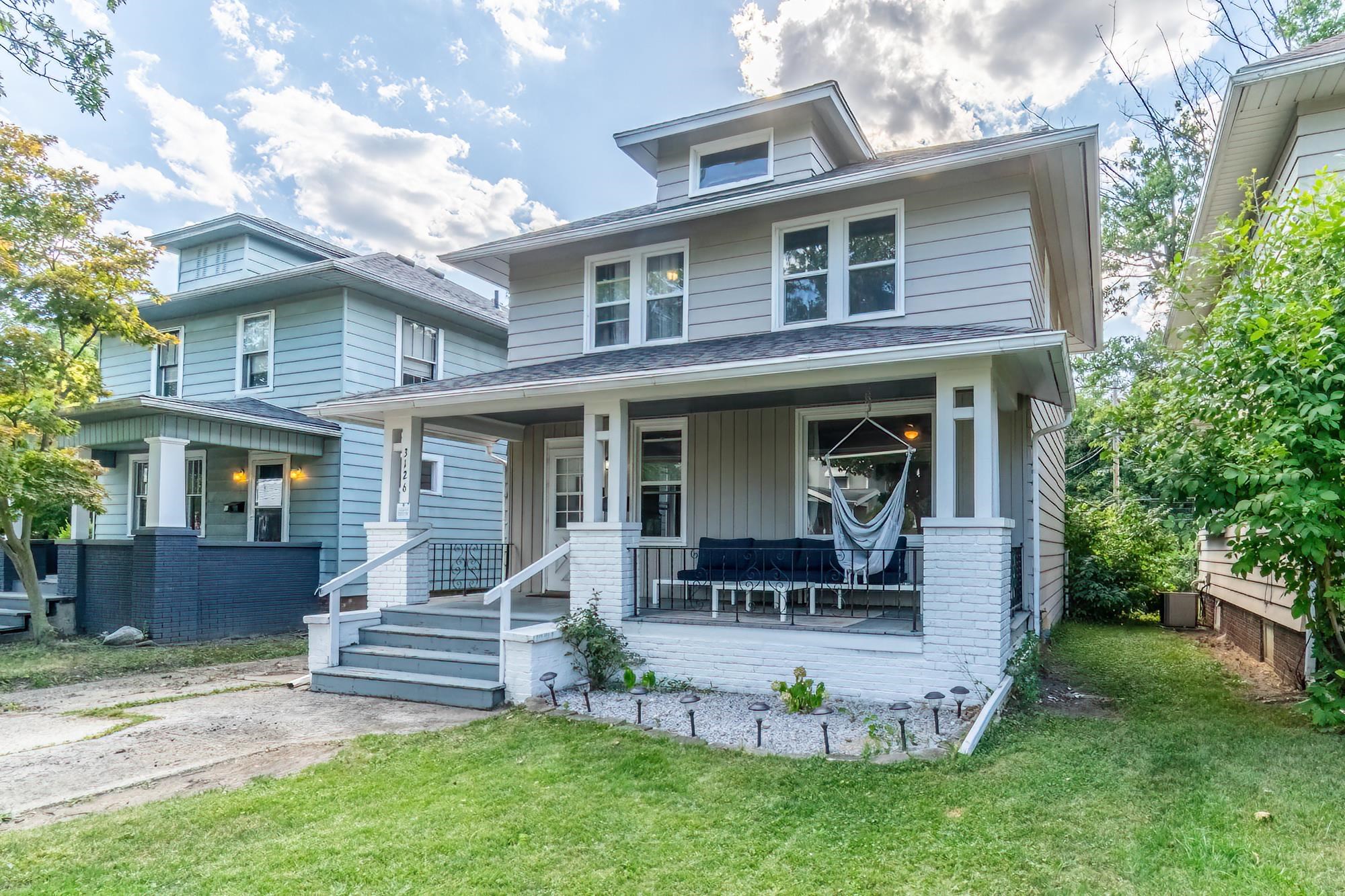 Take a look at this charming historic craftsman in the '07! The Home went through a complete remodel in '20 that included a NEW dimensional shingle roof, NEW laminate flooring, NEW kitchen & baths - which included NEW cabinets, NEW counters, NEW fixtures, NEW ceramic tile - and MORE! Recent updates include bold stylish living room paint, NEW overhead lighting & ceiling fans, and a Blink wireless home monitoring system. Replacement vinyl windows, water heater, and front storm door all aid in increasing the homes energy efficiency. A plethora of city-living rarities are on display including a forward-facing garage with a driveway that offers dedicated off-street parking for two, and a spacious fenced-in backyard just beyond the covered patio. Enjoy the cheerful neighborhood views from the large covered front porch, low-key vibes at '07 eateries & venues, or head just a few minutes North to lively Downtown Fort Wayne for a ballgame or night out! Do not delay ~ Schedule your tour today!