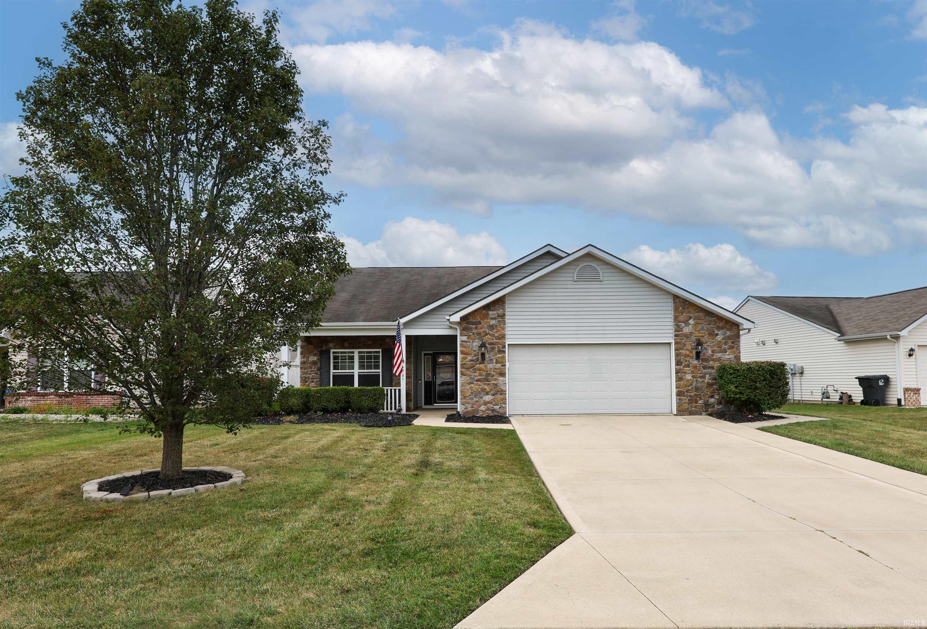 Welcome to this beautifully maintained home offering over 1,800 square feet of thoughtfully designed living space. With 3 bedrooms plus a den, this floor plan provides the flexibility you need—whether it’s for a home office, playroom, or guest space. Storage is never a concern here, with smartly designed spaces throughout the home and an oversized garage. The main living areas feature updated, low-maintenance plank flooring, while plush carpeting adds comfort in the bedrooms. Nine-foot ceilings carry throughout, with cathedral ceilings in both the great room and primary bedroom, creating a bright and open feel. A shiplap accent wall in the great room adds warmth and character. The kitchen is a functional centerpiece with an island, breakfast bar, backsplash, pantry, and stainless steel appliances. Whether preparing weeknight dinners or entertaining friends, you’ll appreciate both the space and design. The spacious primary suite includes a walk-in closet and a large bathroom with a soaking tub and separate walk-in shower, offering a private retreat at the end of the day. The attached two-car garage with bump out provides ample room for vehicles, a workbench, additional refrigerator and plenty of storage. This home is conveniently located near Buckner Park, Lindenwood Nature Preserve, Jefferson Pointe, I-69, and many other amenities, giving you easy access to outdoor recreation, shopping, dining, and commuting. All appliances are included (not warranted), making this home move-in ready.