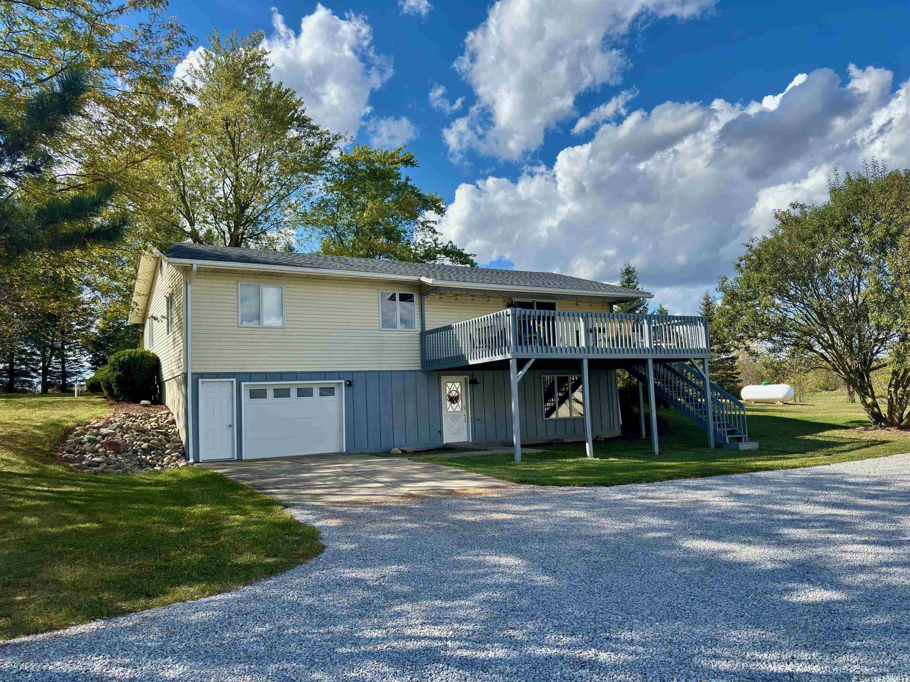 FULLY RENOVATED. FARMLAND INCOME. PRIVATE SETTING ON 6+ ACRES. This 4-bedroom, 2-bathroom home offers 2,880 square feet of updated living space on a quiet 6+ acre lot. Renovated top to bottom in 2023, the interior features all-new flooring, trim, lighting, a custom tile shower, and modern finishes throughout. The open-concept layout feels bright and welcoming, with a kitchen that includes all appliances and a breakfast bar. Major mechanical updates include a new roof, furnace, and hot water heater (2023), plus a new water softener installed in 2024—so all the big-ticket items are already done. Step outside to enjoy beautiful sunrises from the oversized deck, or take advantage of the 40x62 pole barn with a concrete floor, full electric, and a 240V hookup—perfect for workshop needs, equipment, or storage. An oversized heated garage adds even more space and flexibility. The home is surrounded by mature trees that provide natural shade and privacy, and a portion of the acreage is currently farmed—bringing in extra annual income with minimal effort. This is turnkey country living at its finest—modern, functional, and thoughtfully updated inside and out. Schedule your showing today!