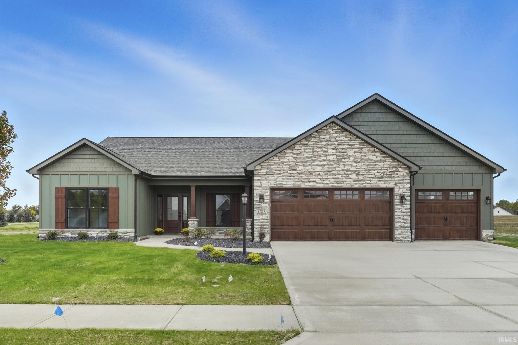 This stunning custom home was designed as a forever home, but plans changed, opening the door for you to make it yours. Inside, you’ll find thoughtful details throughout — from the ceramic tile and stylish flooring in the bathrooms to quality wood cabinetry and quartz countertops in the kitchen. The home features stainless steel appliances, a Jack-and-Jill bath, and even pocket doors in select rooms for added charm and functionality. It's a split-level floor plan allowing privacy between the master suite and two bedrooms, plus a spare room that can be used as a fourth bedroom or an office! Outside, the combination of stone and board-and-batten siding gives this home standout curb appeal — all situated on one of the largest, even leveled lots in the subdivision, perfect for outdoor living or future backyard dreams. The house is located near the 18th tee box. Amenities include a community pool, pickleball, tennis courts, and several walking trails nearby with picturesque views, all within the Bridgewater Reserve neighborhood!